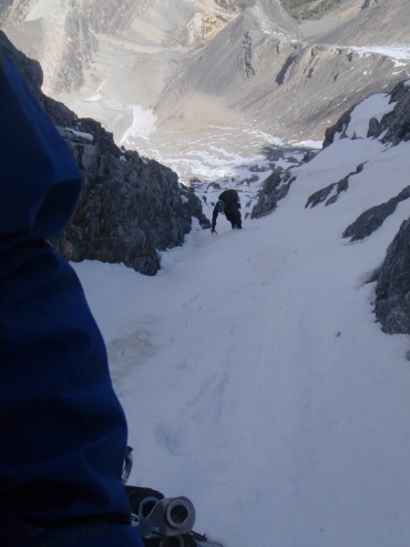 Yesterday, Drew and I decided to get out and climb some…ice! We left during the wee hours of the morning and rendezvoused at the Mt. Borah Trailhead. After hiking up Rock Creek we were rewarded with the view of our objective…the North Face of Mt. Borah (III AI 3). The North Face is a classic alpine route, which involves several thousand feet of steep snow, ice and even some mixed climbing depending on your exact route. With a foot of new snow up high from last week, we were pleasantly reminded that winter is on its way!